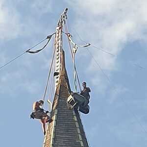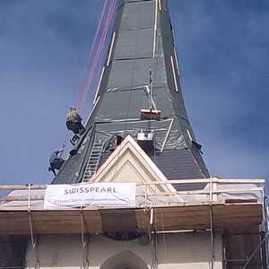 Am 27. Oktober 2024 feierten wir den Abschluss des ersten Abschnittes der Turmhelmsanierung mit der feierlichen Turmkreuzsteckung.
