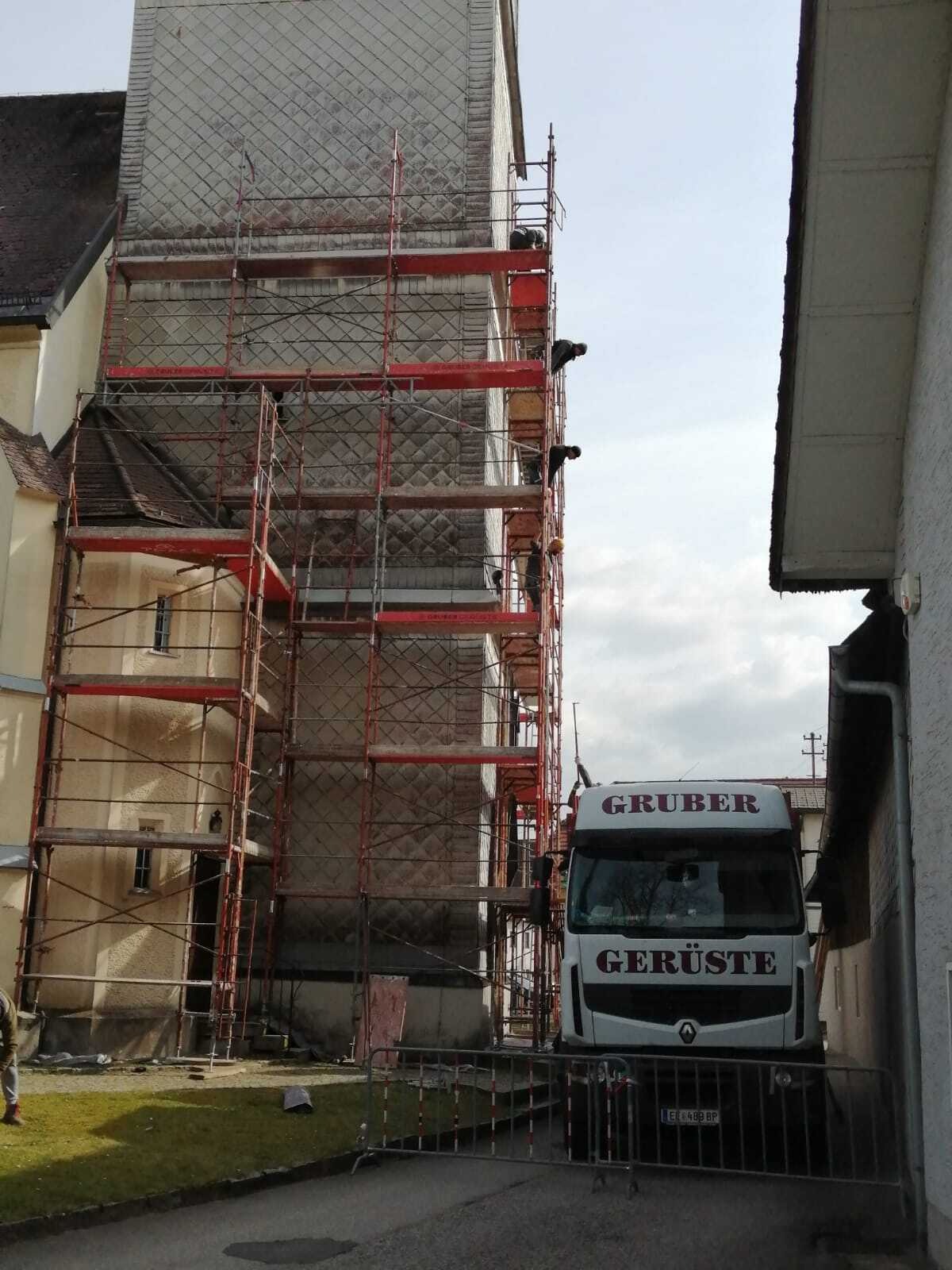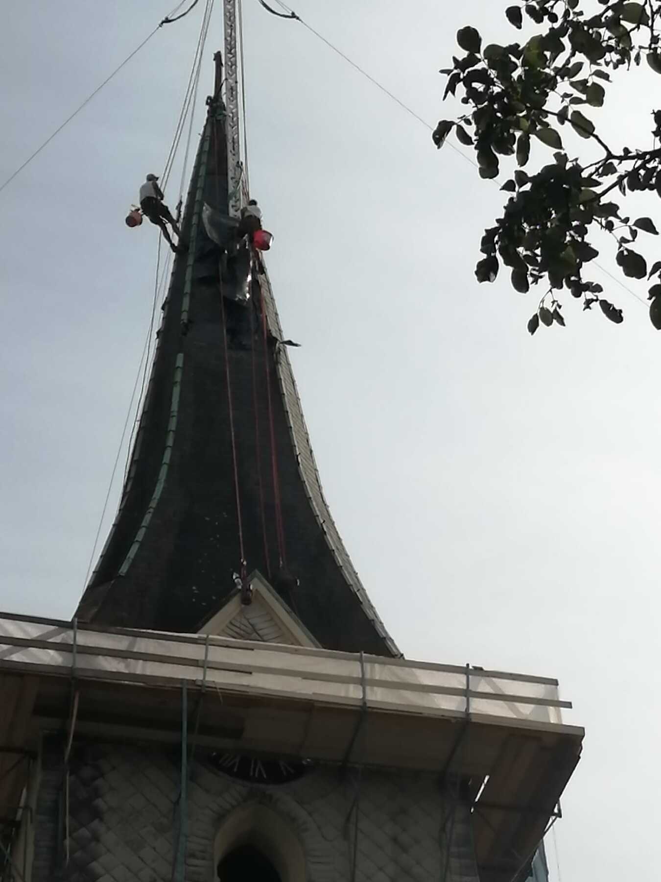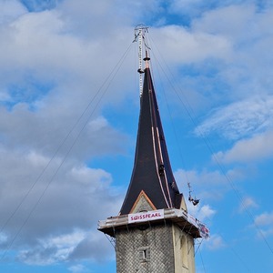 (Am 19. August 2024 hat die Sanierung des Turmhelmes begonnen.)
