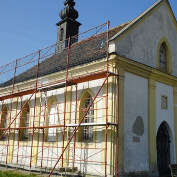 zu den Bildern: Renovierung Doblkapelle - Gerüst wird aufgestellt / 10. 04. 2015